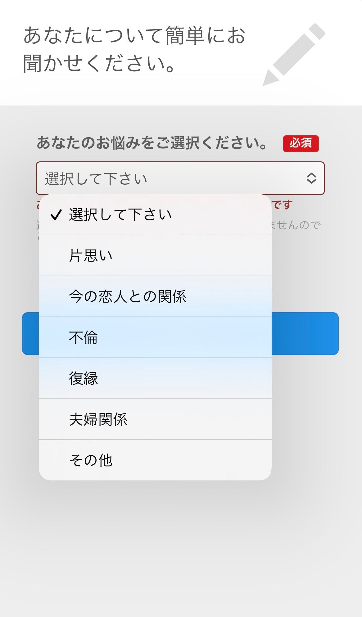 ②お悩みカテゴリーを選択