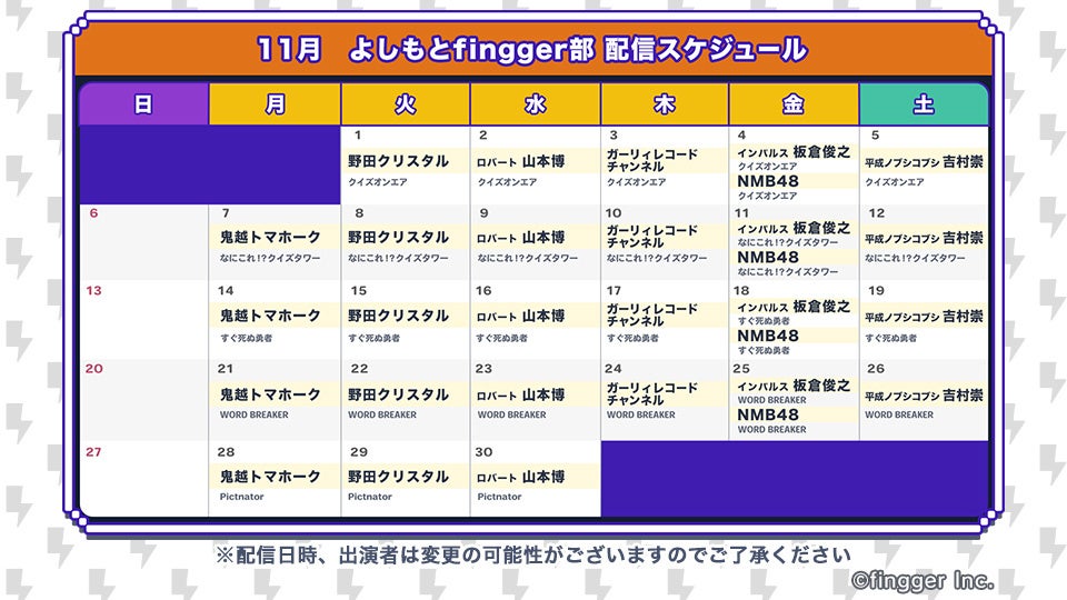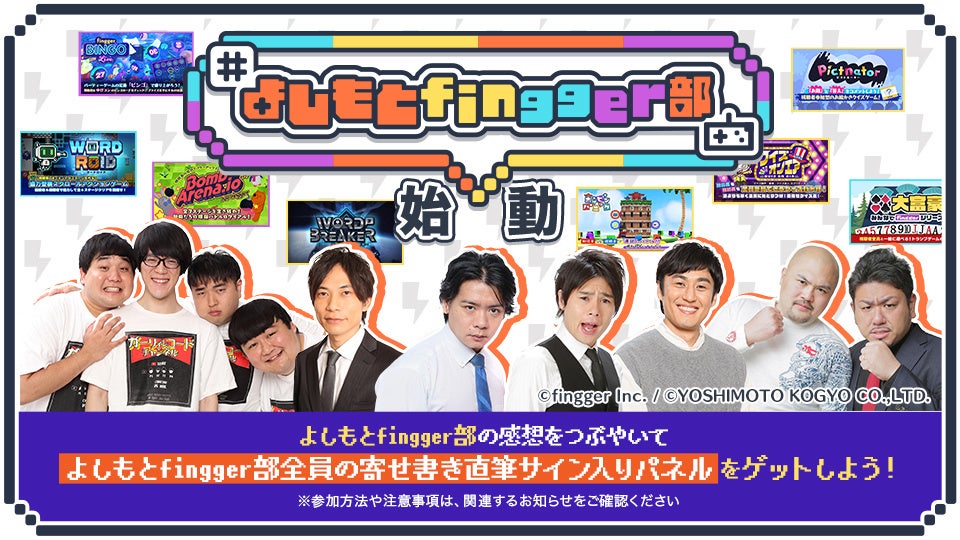 YouTubeで遊べる参加型ゲームプラットフォーム fingger(フィンガー)にて、『よしもとfingger部』特設サイトを公開!11月1日(火)よりいよいよ始動!