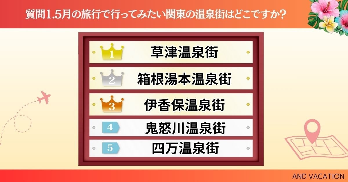 5月の旅行で行ってみたい関東の温泉街はどこ?|沖縄旅行&リゾート・ホテル情報サイトがアンケート