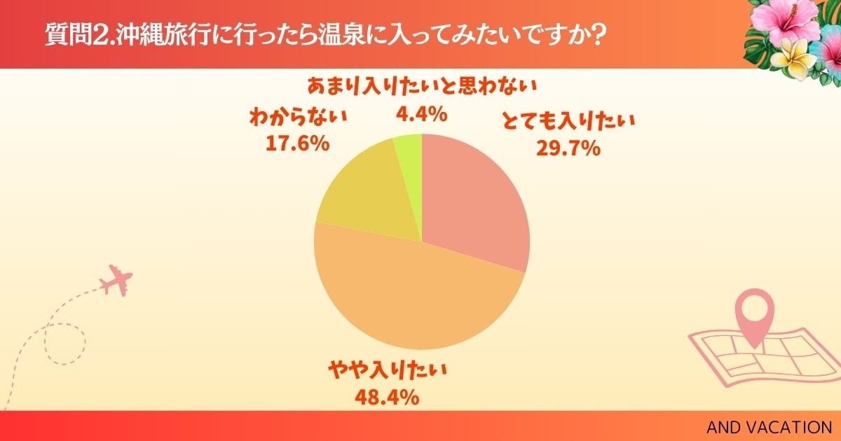 →「温泉には興味がありますが、沖縄で行くかどうかはちょっと迷います。ホテルについているなら入ると思います。」