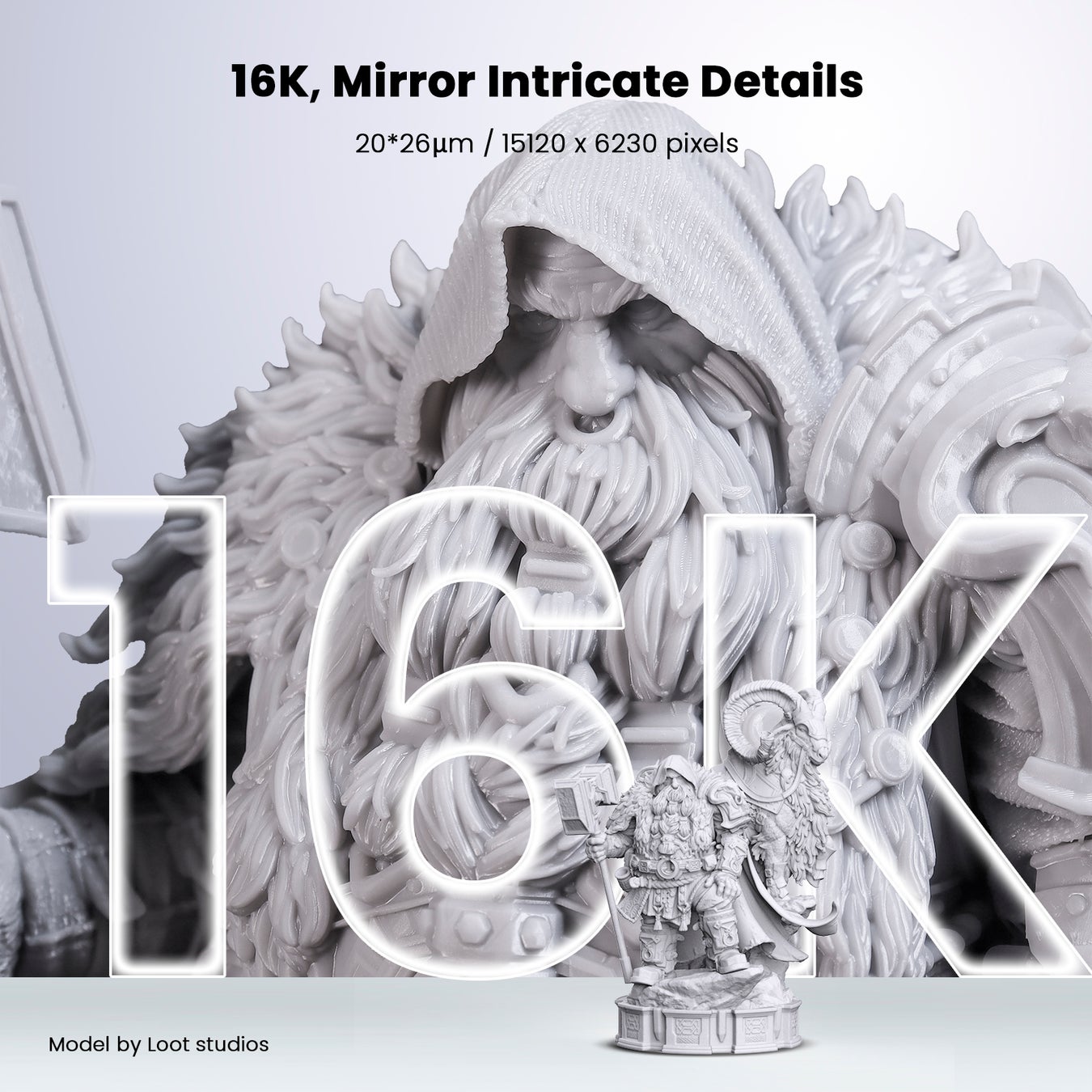 16K解像度(20*26μm)のLCDを搭載し、繊細な小型造形と、大型造形を両立でき、