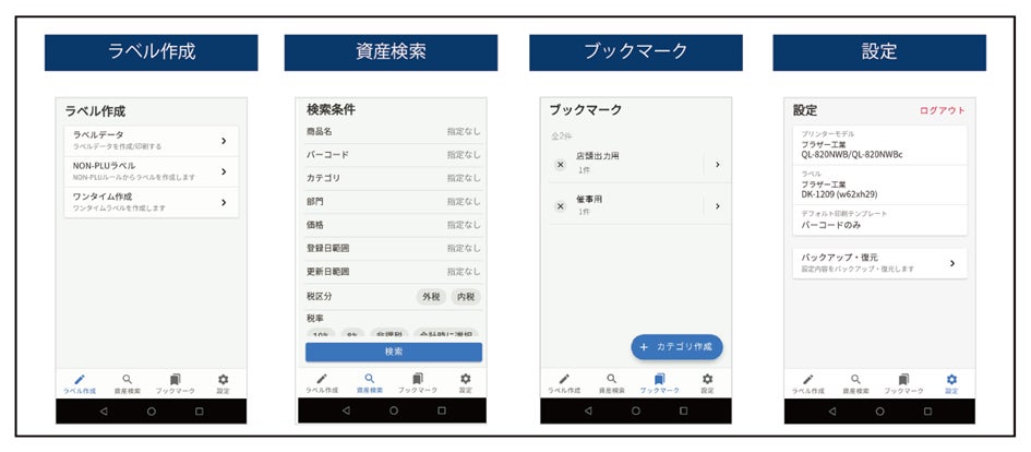 使用するラベルやラベルプリンターの選択、アプリ設定内容のバックアップの実行など