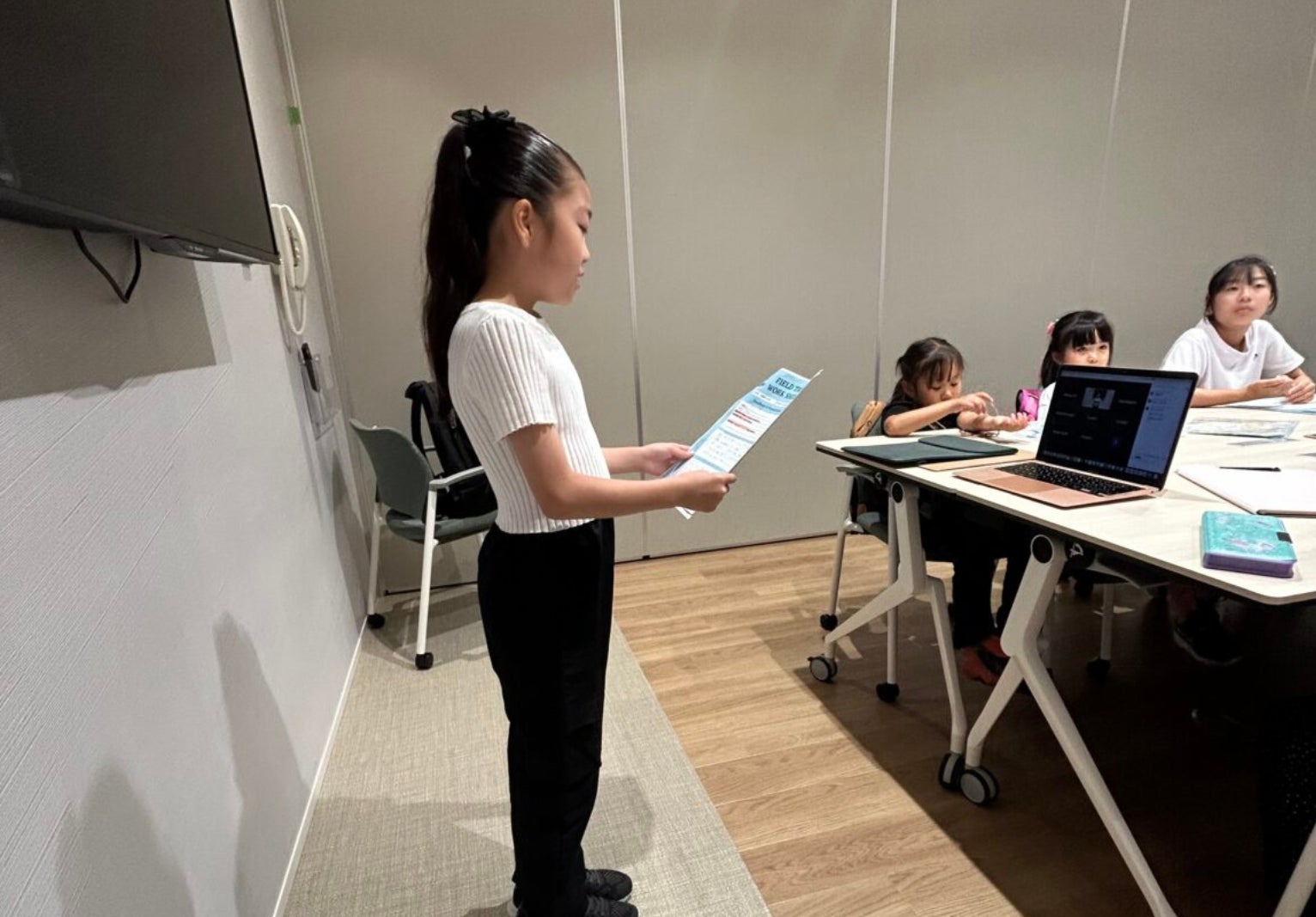 インタビューの内容を振り返り、プレゼンテーションの原稿を作り、みんなの前で発表します。この体験を通じて、子供たちの自信と英語力、コミュニケーション能力をさらに向上させることができます。プレゼンテーションはご家族の方も見学可能です。これまでのイベントでは、保護者様からたくさんの嬉しいコメントをいただきました。