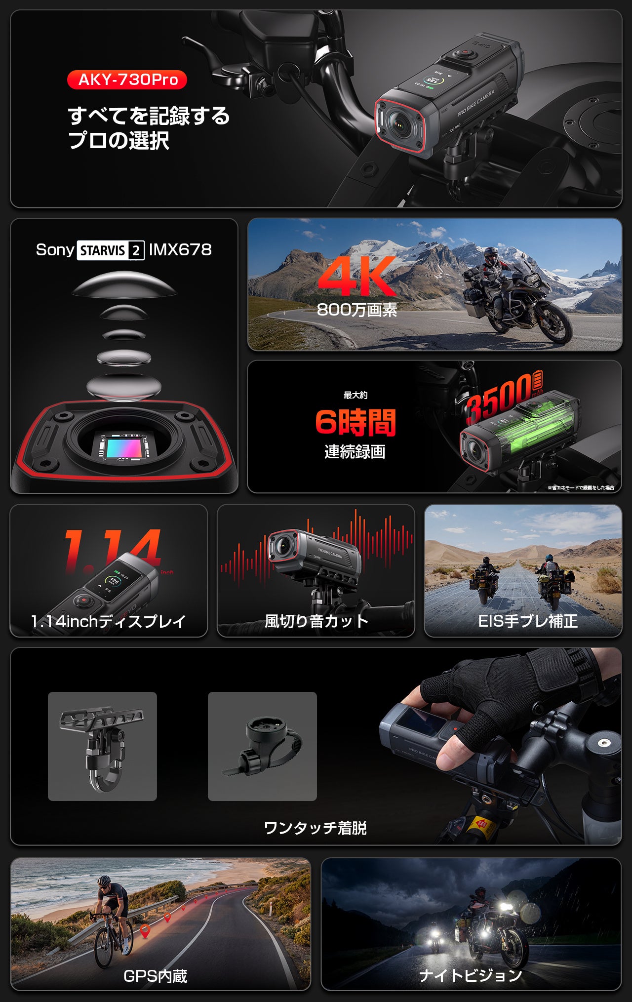 AKEEYOは、自転車・バイク向け4Kライドレコーダー「AKY-730 Pro」のMakuake応援購入プロジェクトを公開。公開からわずか1週間で支援総額550万円・達成率1104%を達成し、同カテゴリにおいて異例の反響を呼んでいます。現在も応援購入受付中です。