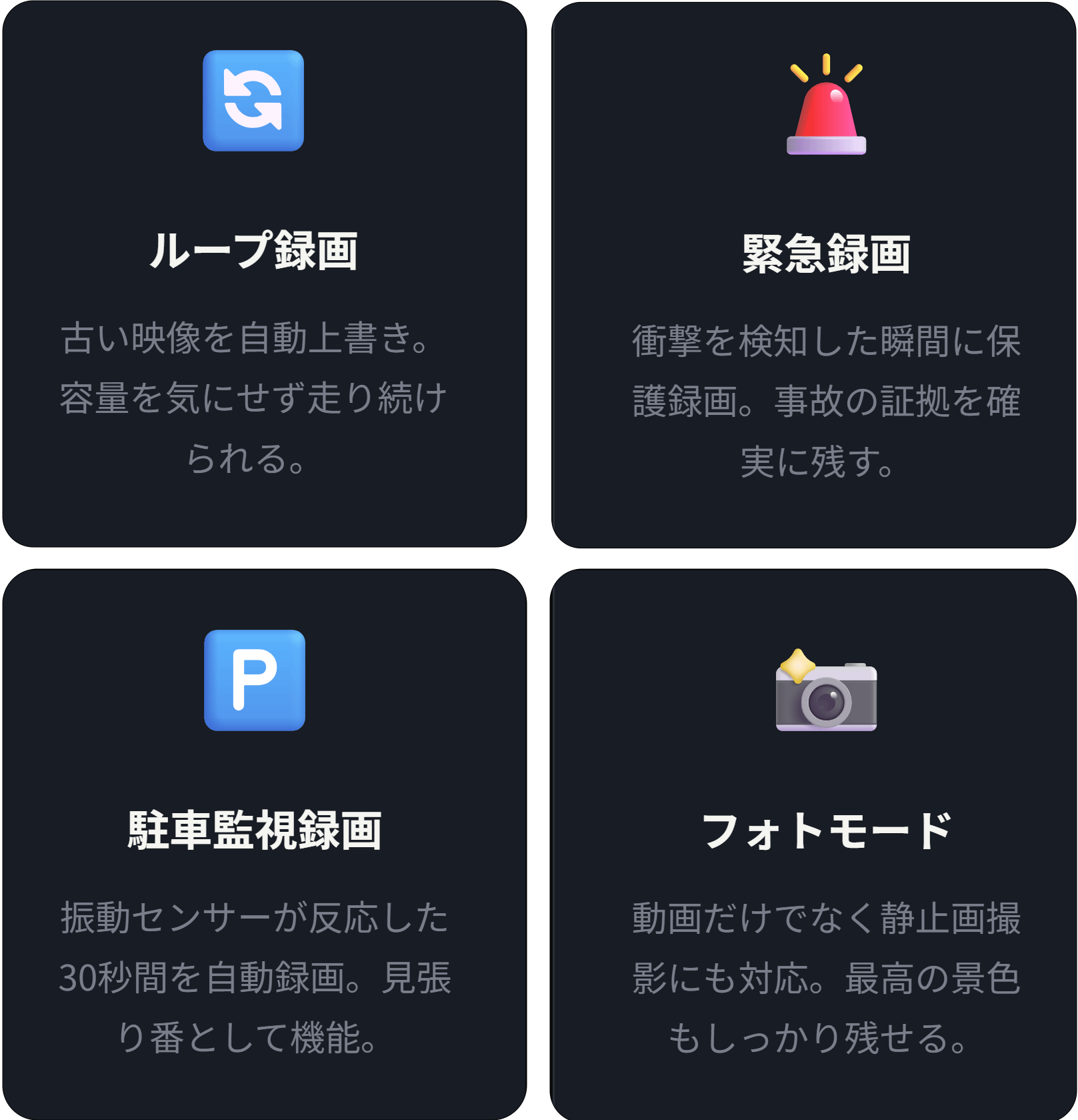 800万画素の最新センサーが昼夜問わず圧倒的な解像度で記録。事故時のナンバープレートも鮮明に捉える。