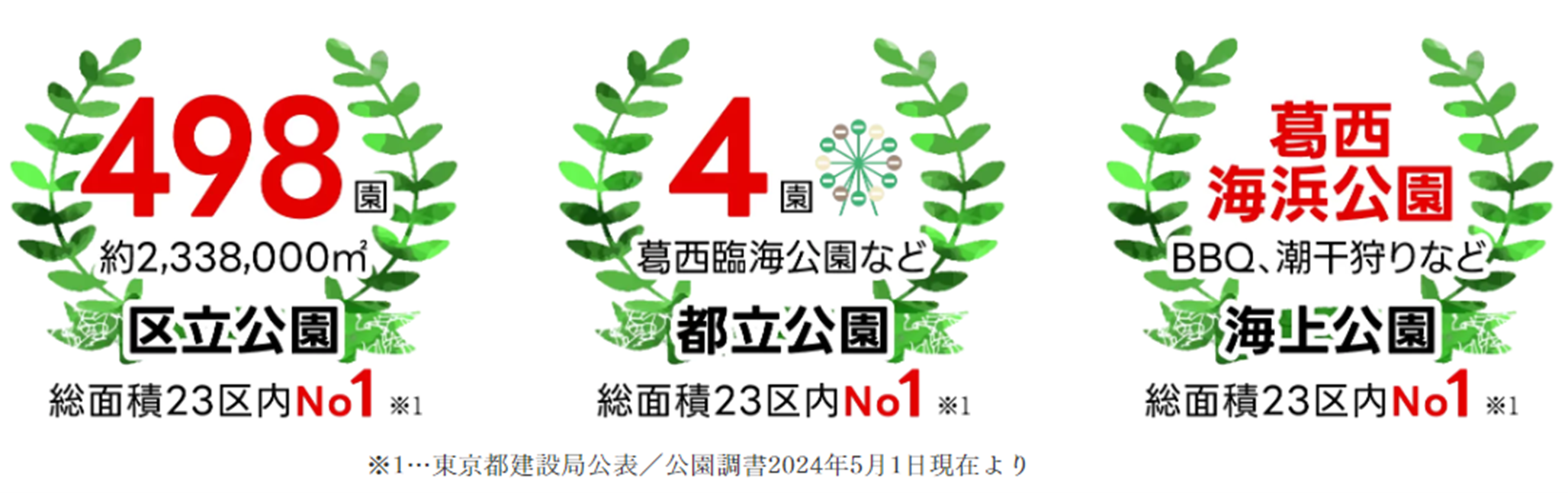 大きなボリューム感ある建物の中で、吹抜や道路面の抜けを活かした間取りにより開放感を感じる空間をつくりあげました。また子育て世代のファミリーに向けて家族や友人等とそれぞれが楽しい時間を過ごせる+αの空間も実現し、都市公園総面積23区内No.1の緑と公園が充実した江戸川区(※)の街づくりに調和させる為、自然素材を用いながらも高級感をミックスした外観デザインとなっております。