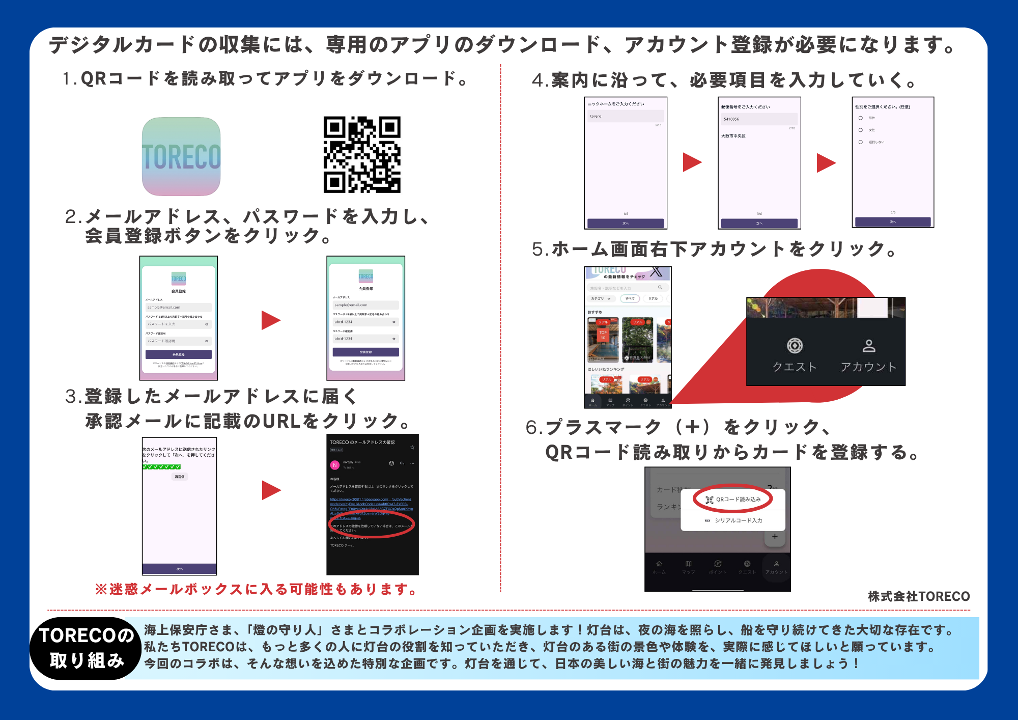 本コラボでは、TORECO上にて1基の灯台につき2種類のデジタルカードを入手することができます。ひとつは、海上保安庁がこれまで配布してきた「灯台カードDigital」。もうひとつは、『燈の守り人』オリジナルの灯台コラボカードです。これら2種類のカードが、同一のプラットフォーム上でダウンロードできるようになります。