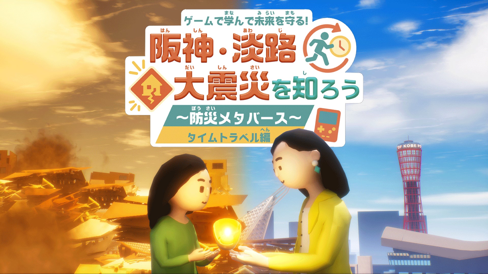 本コンテンツは、阪神・淡路大震災から30年の節目に合わせて制作された、防災教育用の体験型メタバースゲームです。震災当時の神戸の街並みを再現したバーチャルマップ上で、実際の被害状況や避難行動を学びながら、「あの日」へタイムスリップしたかのような没入体験が可能です。