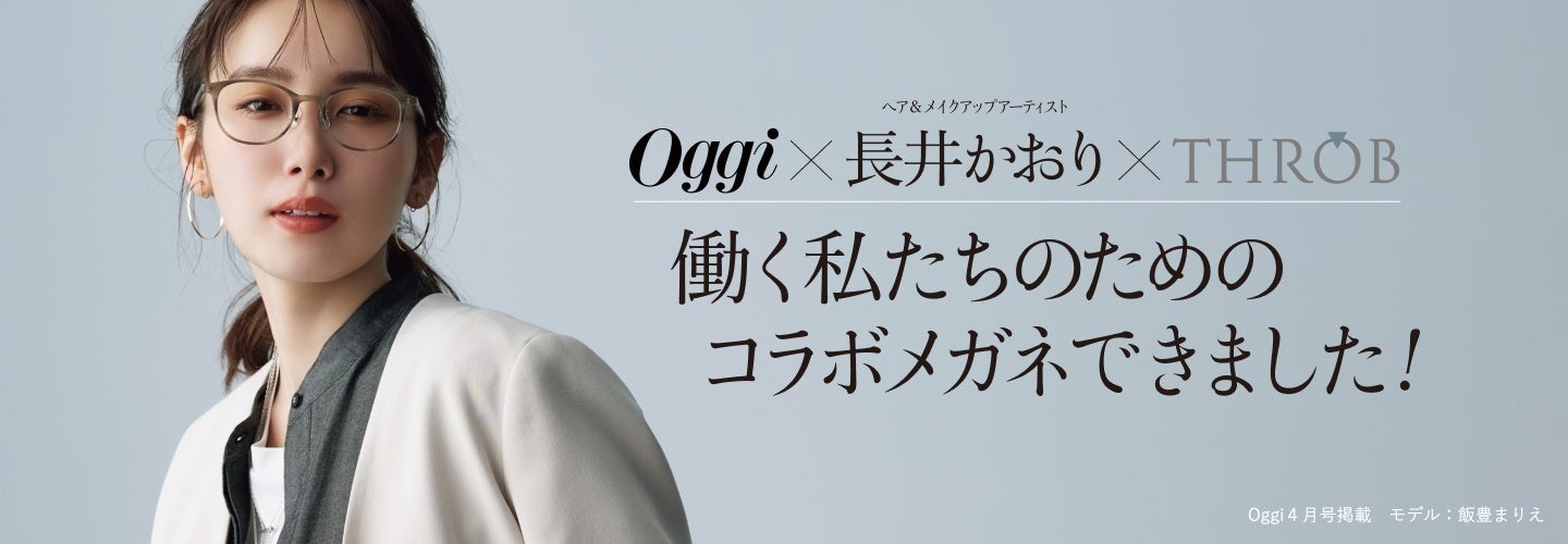 眼鏡市場は、30歳からの働く女性に向けてシンプルでセンスのよいベーシックなファッションを提案する雑誌 Oggiと、ヘア&メイクアップアーティストの 長井 かおりさんとコラボし完成したメガネフレームを、幅広い世代の女性に人気の眼鏡市場オリジナルブランドの「THROB(スロブ)」より、全国の眼鏡市場店舗および眼鏡市場オンラインショップにて販売を開始しました。