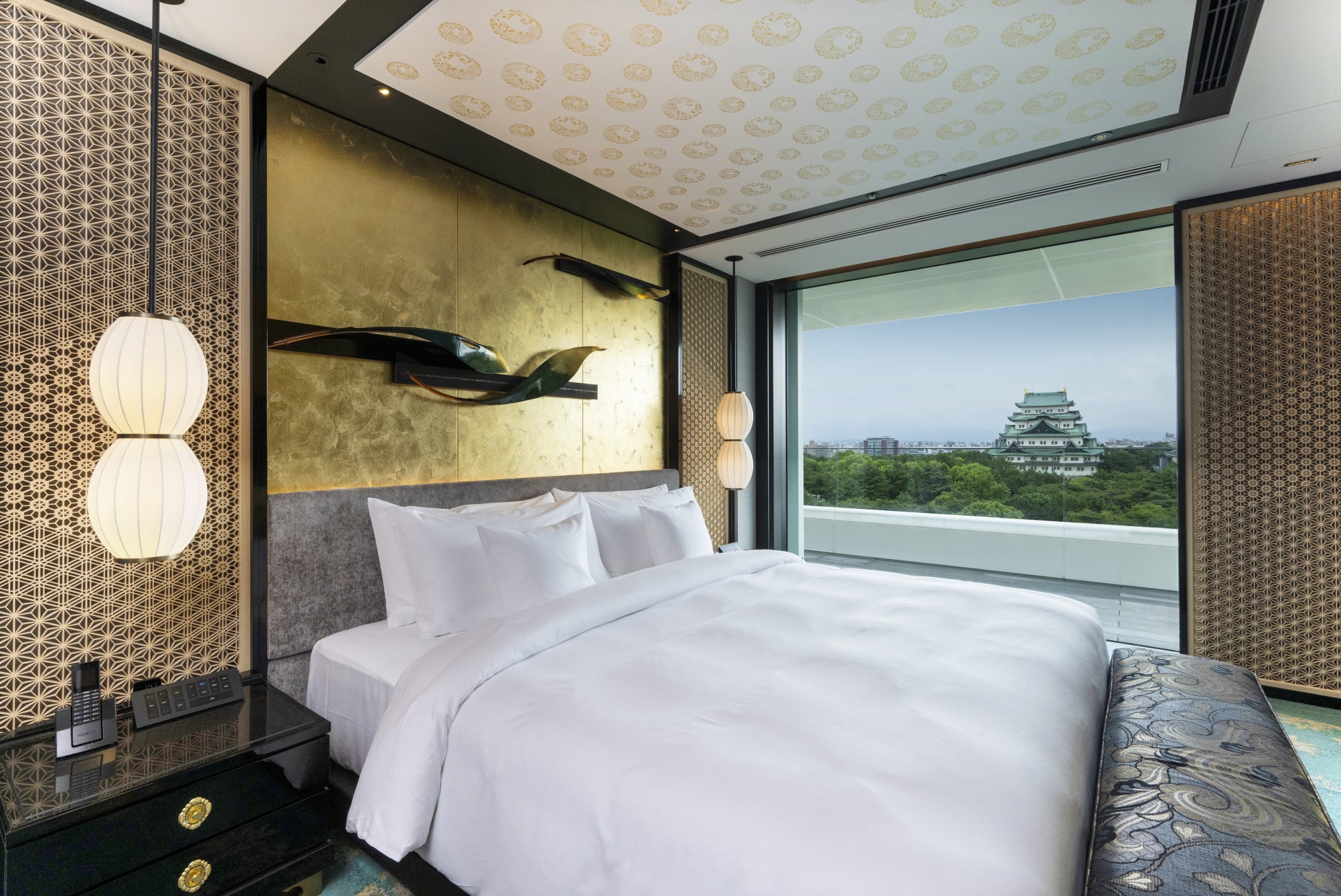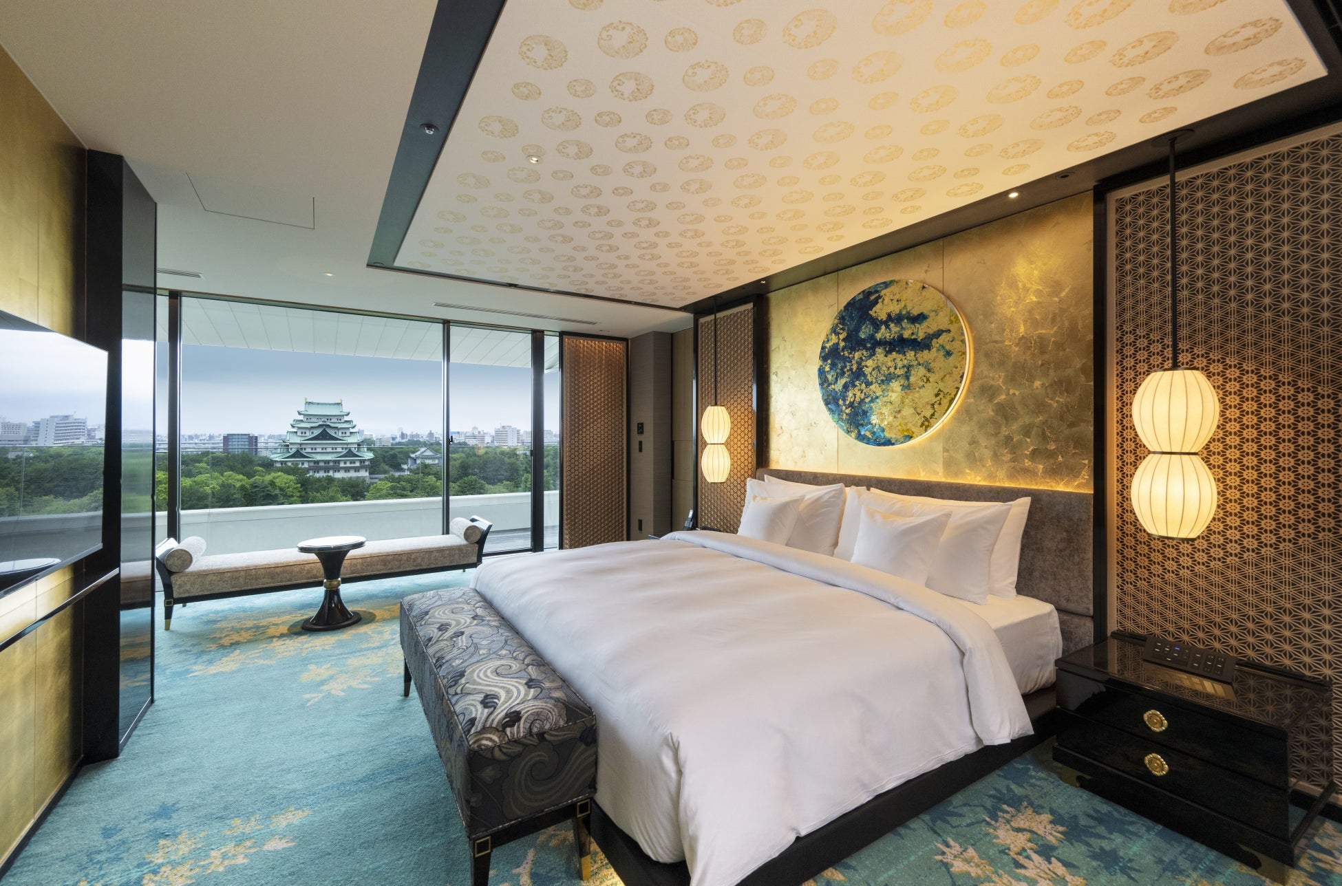 一歩足を踏み入れると、吉祥を司る「麟鳳亀龍」を多彩な視点で描いたアートが随所に配され、日本の歴史と伝統が織りなす豪華絢爛な空間が広がります。また客室にも武家文化の粋や三英傑の風土を映す伝統の手わざによる現代工芸が散りばめられ、6名の作家が手がけた客室には、箔、唐紙、組子、染、漆、彫刻などの作品が斬新かつ優雅に昇華され、訪れるゲストを奥御殿のような非日常へと誘い、贅と静謐が調和した比類なき体験をもたらします。