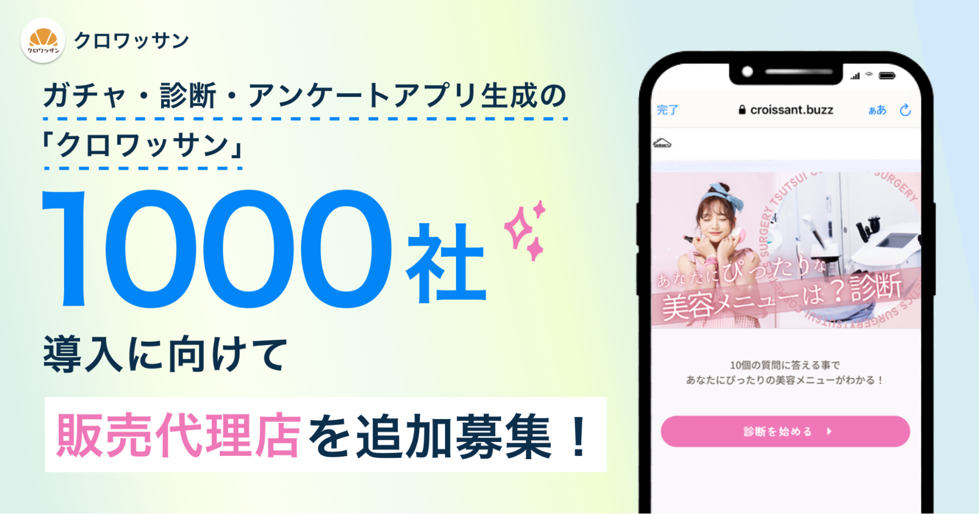 ガチャ・診断・アンケートアプリ生成の「クロワッサン」!1000社導入に向けて販売代理店を追加募集!