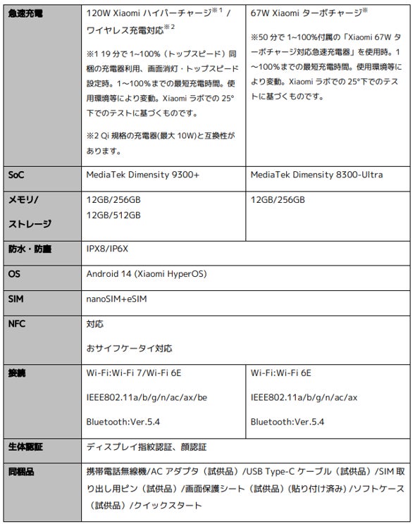 ※グローバルで発売された「Xiaomi 13Tシリーズ」との比較。
