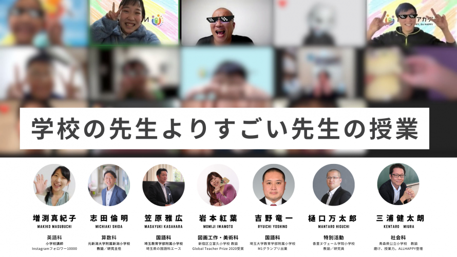 さらに、教育界のノーベル賞と称される「Global Teacher Prize 2020」で最終候補者50人に選ばれ、約500名の現役教師が学ぶ日本最大級の教育オンラインサロン「授業てらす」で講師を務める岩本紅葉先生による、図工の授業を開催します。