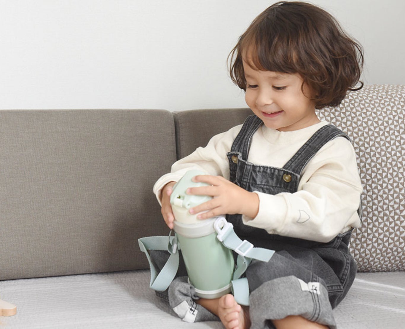キッズボトル自体にもショルダーベルトは付属していますが、専用カバーに付属したベルトはショルダーパッド付きで、肩のくい込みも防止。