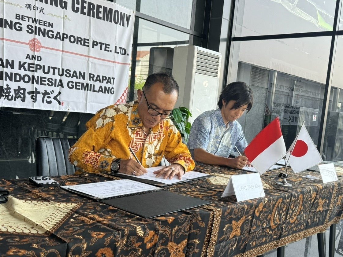 「焼肉すだく」を運営する株式会社総合近江牛商社(本社:滋賀県守山市、代表取締役:西野立寛)は株式会社ゼニス(滋賀県)のインドネシア法人であるPERNYATAAN KEPUTUSAN RAPAT PERSESOAN TERBATASA PT. ZENITH INDONESIA GEMILANGと2024年7月26日(金)、フランチャイズ契約の調印式を行いました。