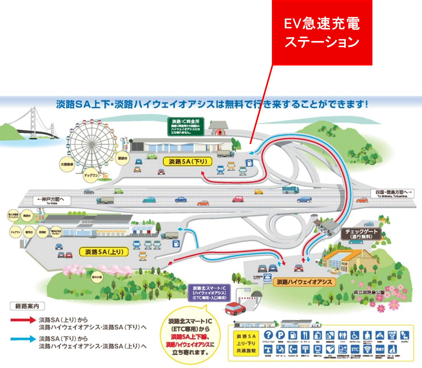 この取り組みの一環として、淡路SA(下り)において、12月19日(金)10時から充電サービス(有料)を開始することとしましたので、お知らせいたします。