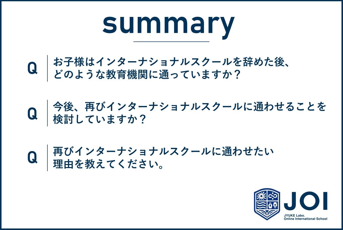 調査概要:インターナショナルスクールを辞めた後の学校と再入学の可能性に関する調査