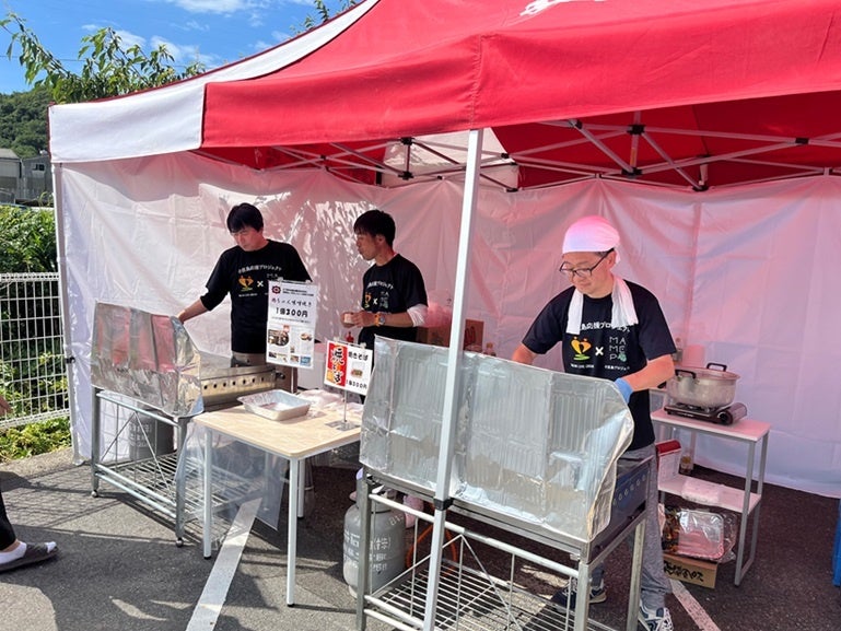 『昭和浪漫倶楽部』は、高齢者が住み慣れた町で安心して長く、健康に暮らしていくためのサポートを目的に展開しているコミュニティサロンです。今回の夏祭りは、普段から『昭和浪漫倶楽部』小豆島店の活動に参加されている方はもちろん、惣菜店『福み味』や高齢者専門宅配弁当『宅配クック ワン・ツゥ・スリー』を利用していただいている方やそのご家族・ご友人など、地域の皆様に対する感謝の気持ちを込めたイベントとして開催しました。当日は、催し物として「射的」「駄菓子すくい」「輪投げ」「ペットボトルボウリング」「ビンゴ大会」、屋台では『宅配クック ワン・ツゥ・スリー』の“ご馳走の日”特別メニューにもなった「鶏ちゃん味噌焼き」をはじめ、「焼きそば」「かき氷」「ラムネ」を用意。350人を超える方々にお越しいただき、年齢問わず『夏祭り』を楽しむ様子が見られました。