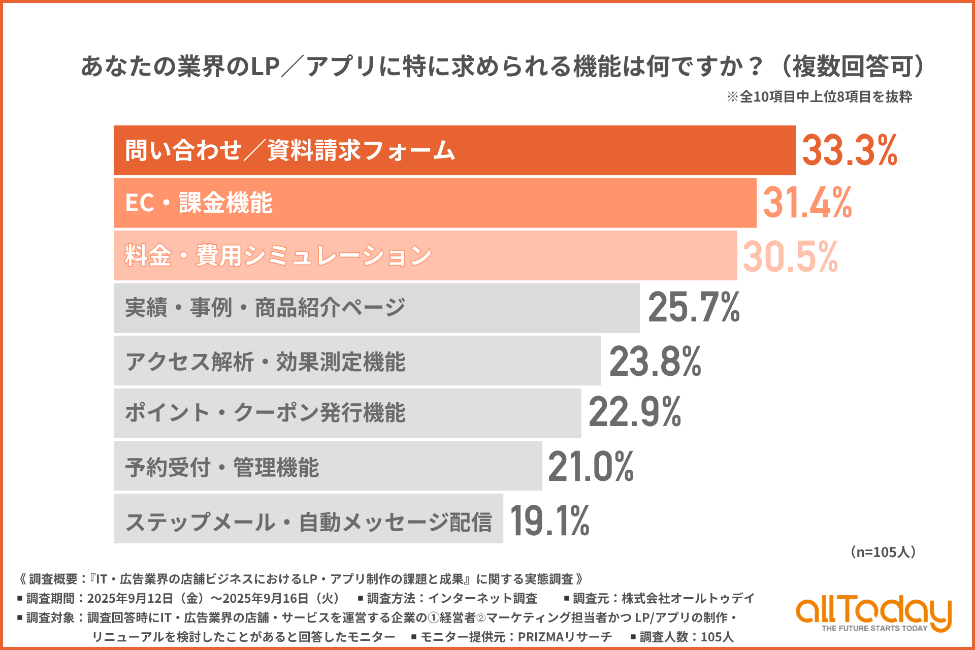 【IT・広告業界のLP・アプリ制作課題ランキング】ポイント施策から導線最適化まで多層化する悩み 求められる機能の上位は「問い合わせフォーム」
