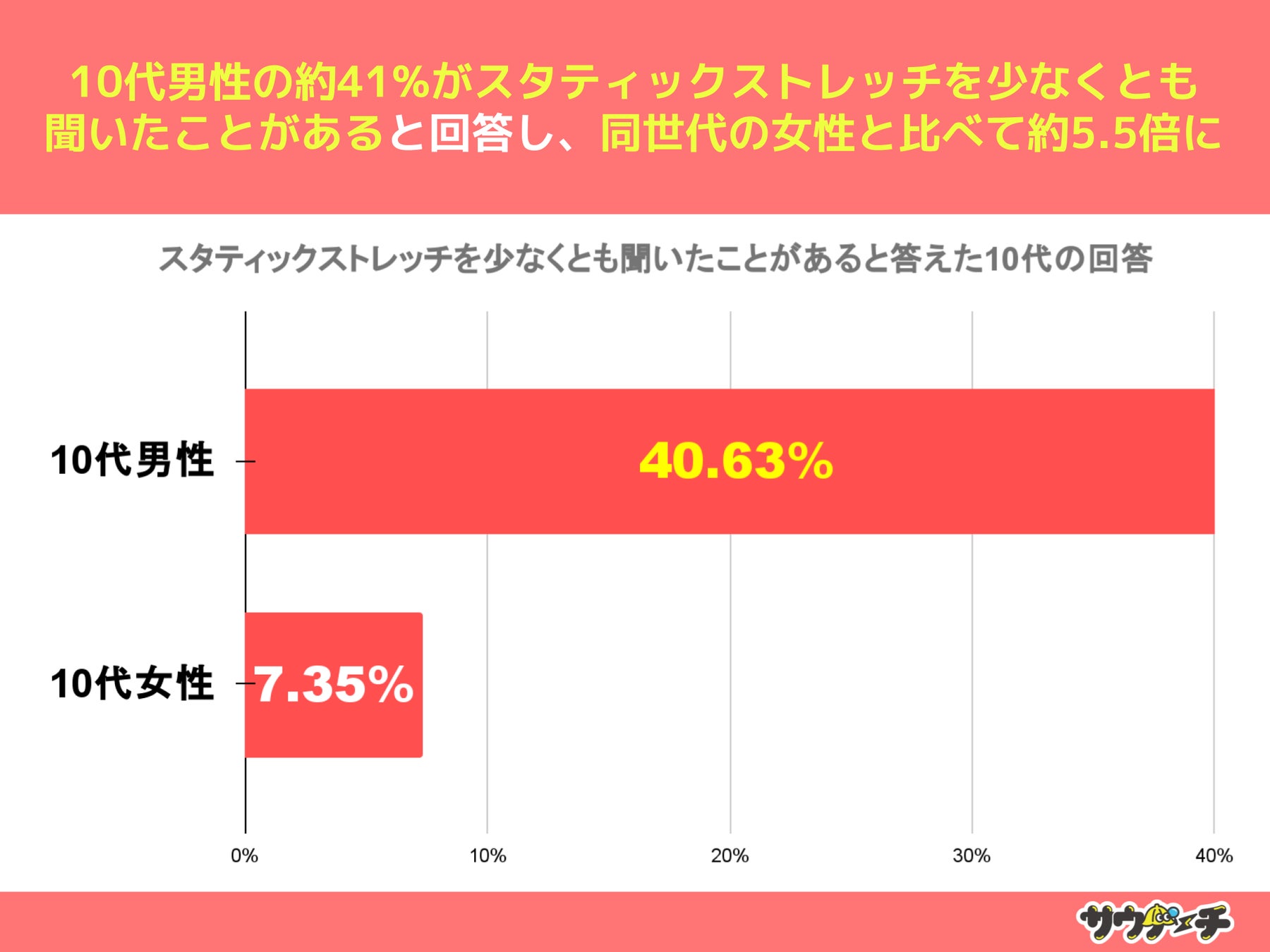 【10代男性の約41%がスタティックストレッチを少なくとも聞いたことがあると回答し、同世代の女性と比べて約5.5倍に】