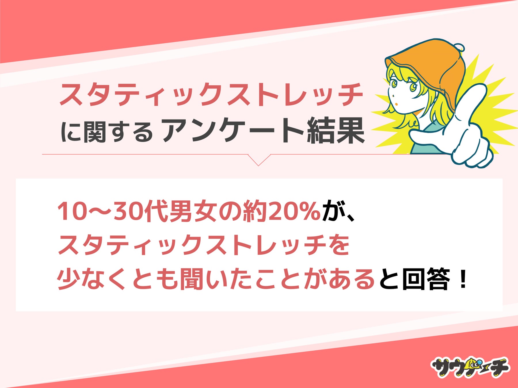 10〜30代男女の約20%が、スタティックストレッチを少なくとも聞いたことがあると回答【スタティックストレッチについてのアンケート】