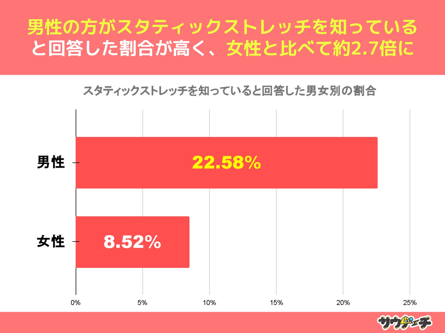 【男性の方がスタティックストレッチを知っていると回答した割合が高く、女性と比べて約2.7倍に】