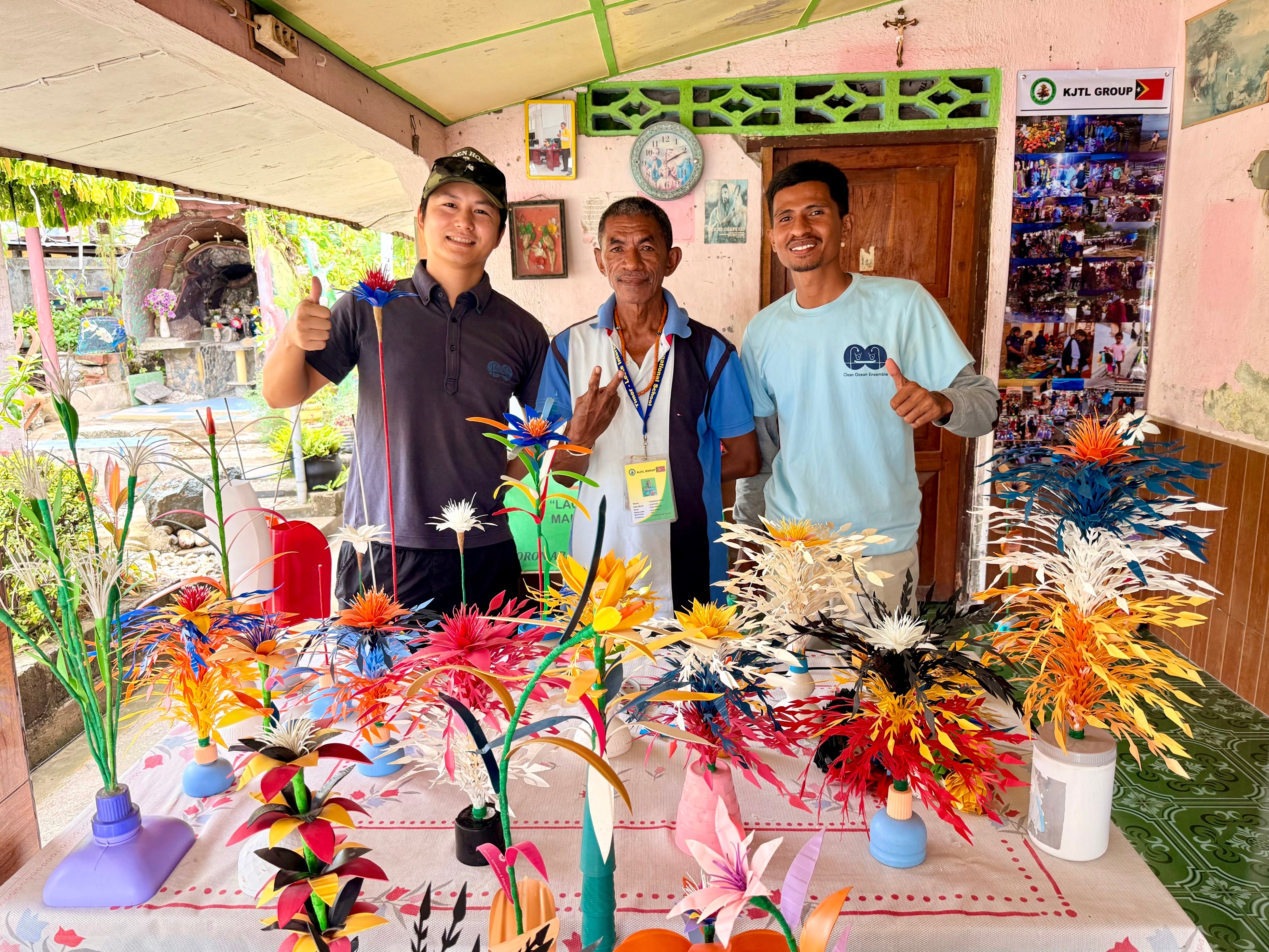 2026年3月1日、東ティモールでリサイクルプラスチックから造花を制作する活動を行っているKJTL(Kreativu Juventude Timor-Leste)に対し、海洋ごみ由来の硬質プラスチック約1.25 kgを提供しました。