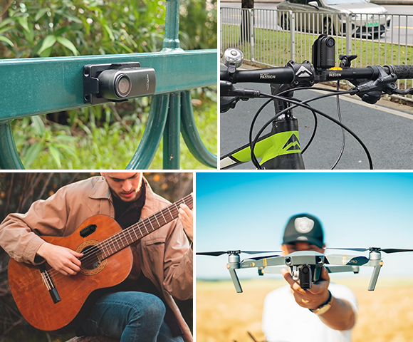 製品の磁気設計とストラップの取り付け方により、帽子、胸、壁、自転車、さらにはペットにまで簡単に装着できます。手を解放して、第一人称視点で日常を記録することが可能です。また、ペットなどのユニークな視点からの撮影では、まるで異世界を体験しているかのような映像が楽しめます。