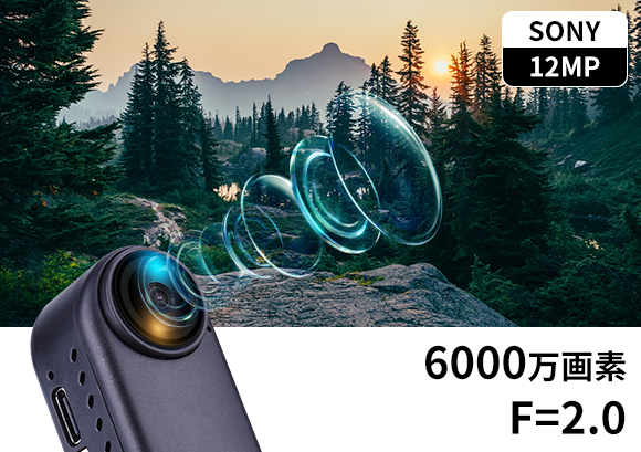 「Hawkeye」は高性能なSONY製 12MPセンサーを搭載し、F2.0の大口径7層ガラスレンズを採用しています。その結果、画像解像度は市販のアクションカメラの3倍である6,000万画素に達し、美しく細やかな瞬間を鮮明に記録できます。