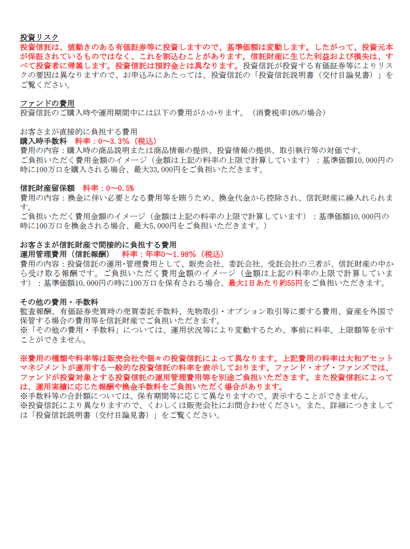 当ファンドのお申込みにあたっては、販売会社よりお渡しする「投資信託説明書(交付目論見書)」の内容を必ずご確認のうえ、ご自身でご判断ください。