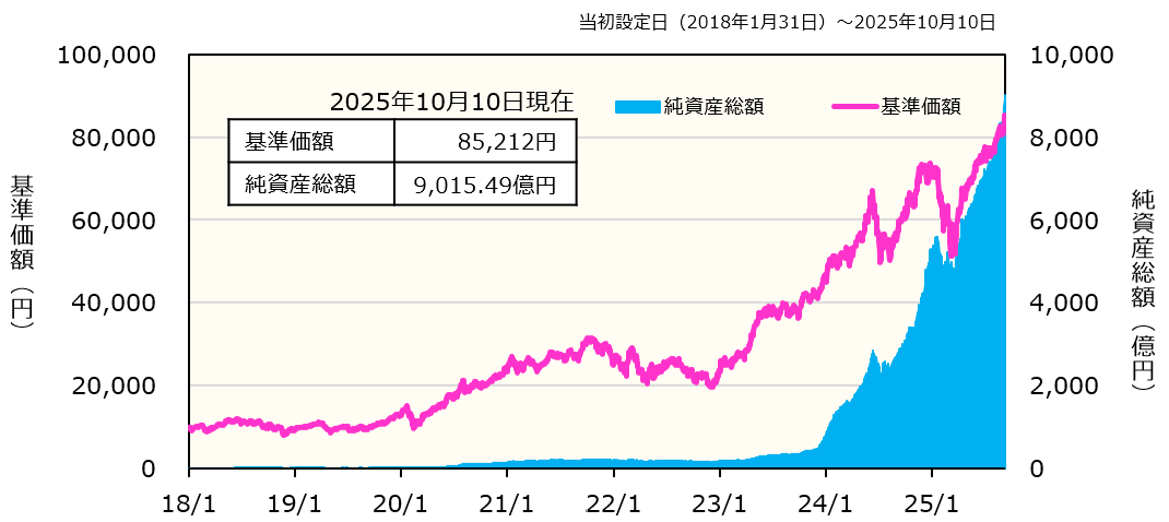このたび、当ファンドの純資産総額が2025年10月10日付で9,015億円となり、9,000億円を突破いたしましたことをお知らせいたします。
