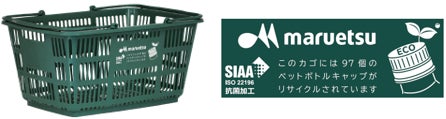 マルエツで店頭回収したペットボトルキャップの再生原料を約30%使用した買い物カゴを導入し、プラスチックとCO₂の削減に貢献いたします。