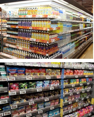 飲料のコーナーでは、「黒豆茶」や「ごぼう茶」など、健康を意識した商品の品揃え強化に加えて、新商品コーナーを設けます。また、お菓子のコーナーでは、市場が伸長している、グミの品揃えを強化いたします。
