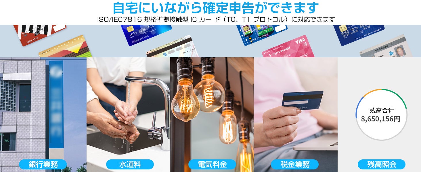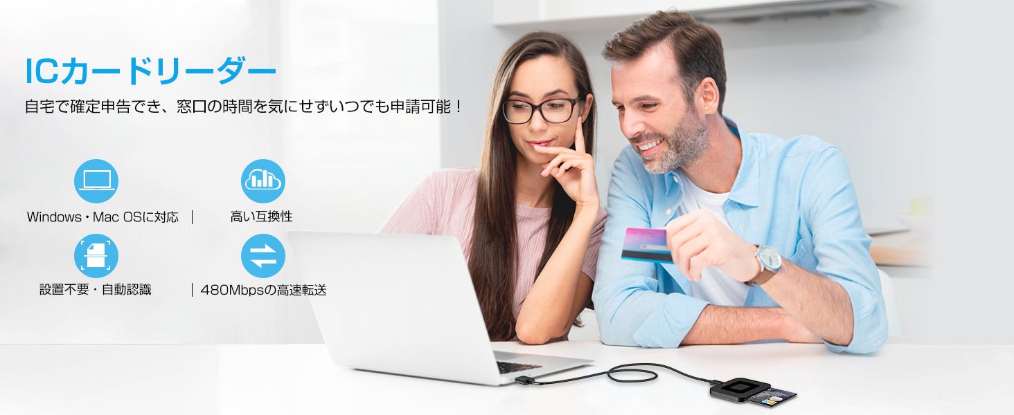 このICカードリーダーを使用すれば、自宅で簡単に確定申告が可能です。交通費や時間を節約し、いつでも申請できます。デジタル認証やネットワークATM転送、各種支払いに対応し、あなたのビジネスライフを一層便利にします!※金属端子のない住民基本台帳カードには対応しておりません。