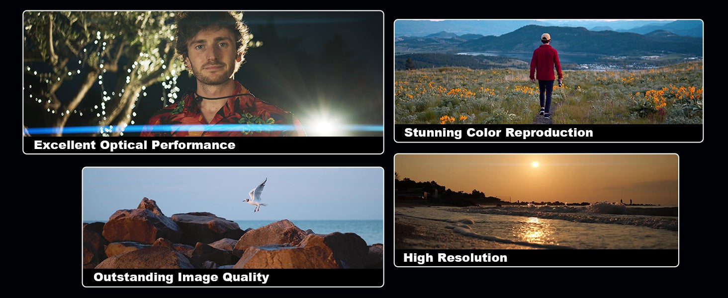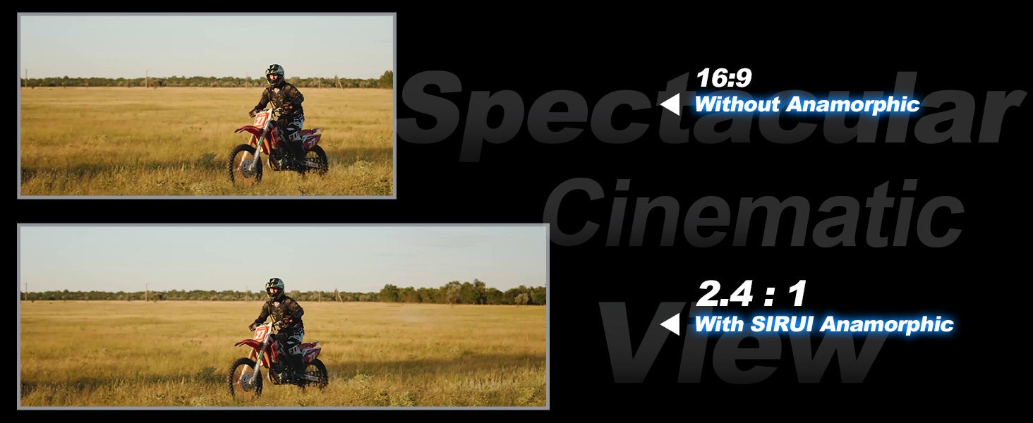 Siruiのアナモルフィックレンズは、1.33倍の変形比率によって本格的なシネマスコープ画角を実現。特徴的な横長ボケや美しいレンズフレアなど、ハリウッド映画でおなじみの表現を、皆様の創作活動にお届けします。
