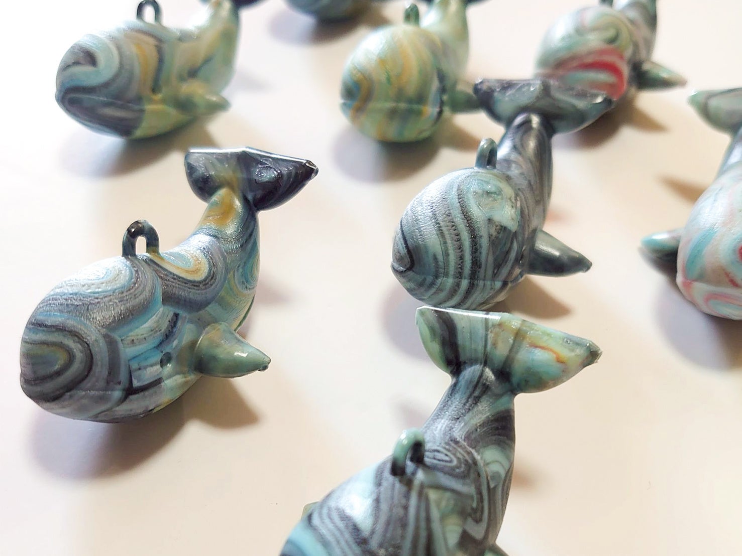 小川島から生まれたクジラをモチーフにしたキーホルダーを制作。