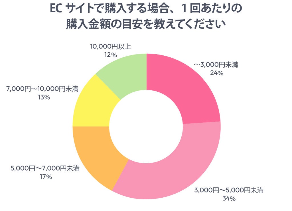 ECでの1回あたりの購入金額は「3,000~5,000円未満」(34%)が最も多く、