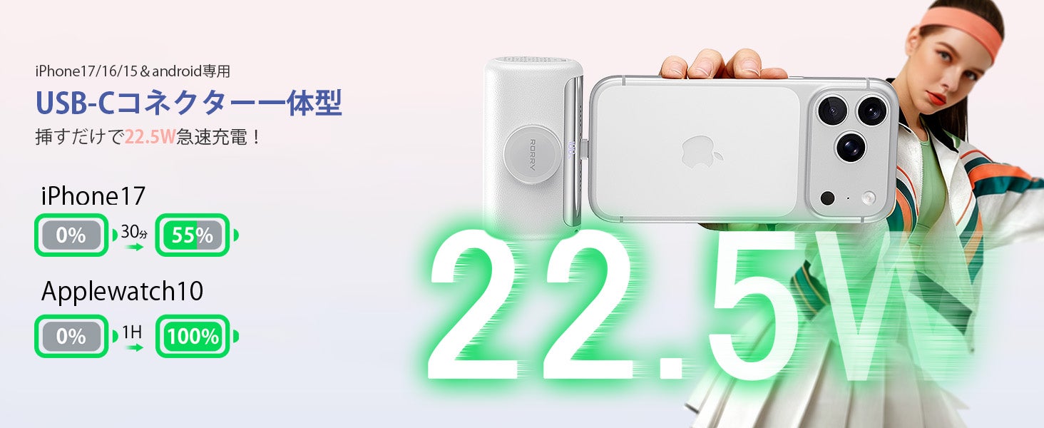 女性に寄り添う充電ブランド RORRY(ロリー)は、直挿しモバイルバッテリー「D5-10000」を対象としたブラックフライデー特別セールを、2025年11月21日〜12月1日の期間限定で開催いたします。