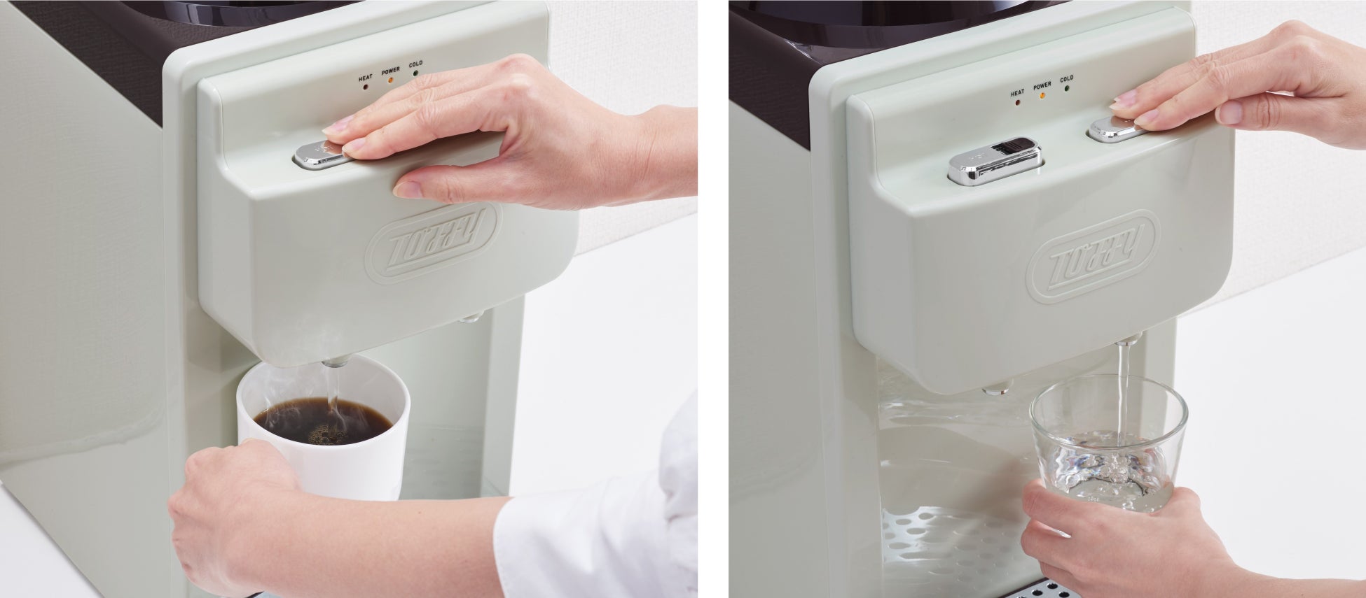 ボタンを押すだけで冷水・温水がすぐに楽しめるので、リラックスタイムやテレワーク時など、いつでもすぐにほっとひといき。毎朝の白湯やコーヒーにもおすすめです。