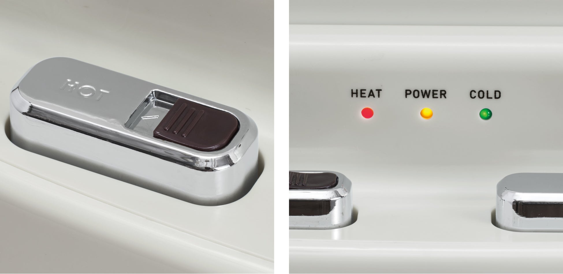 温水ボタンは安全ロック機能付きで、お子さまやペットがいる家庭でも安心してお使いいただけます。運転状況は一目でわかるライトでお知らせ。