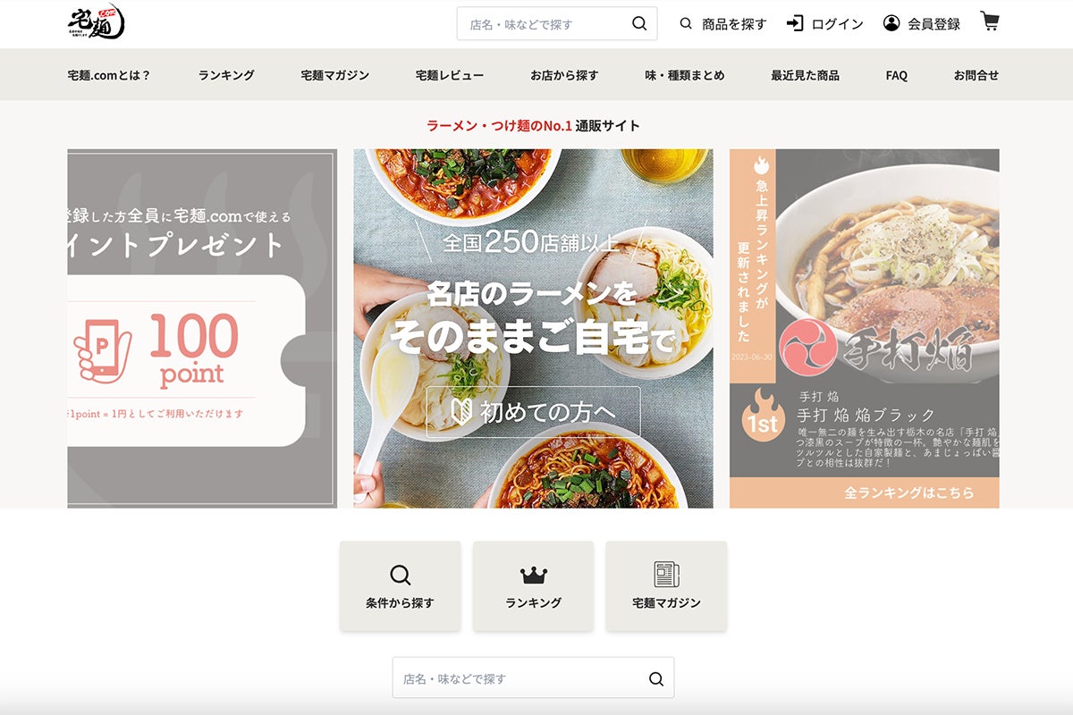 「宅麺.com」とはー全国278店舗、398商品を取り扱う国内No.1ラーメンお取り寄せサイト
