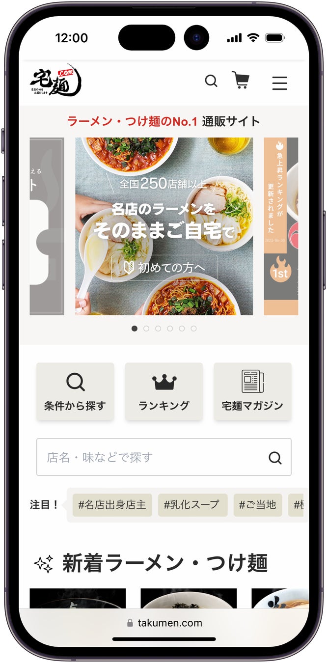 宅麺.comは今後も国内No.1ラーメンお取り寄せサイトとして、よりユーザービリティの高いサービスを目指して改善に努めてまいります。