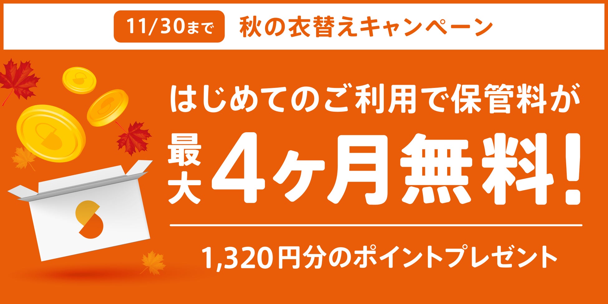 サマリーポケットでは秋の衣替えやお部屋の片付けをお手伝いをするべく、はじめてご利用の方も、サマリーポケット会員の方もお得にご利用いただける「秋の衣替えキャンペーン」を開催中です!