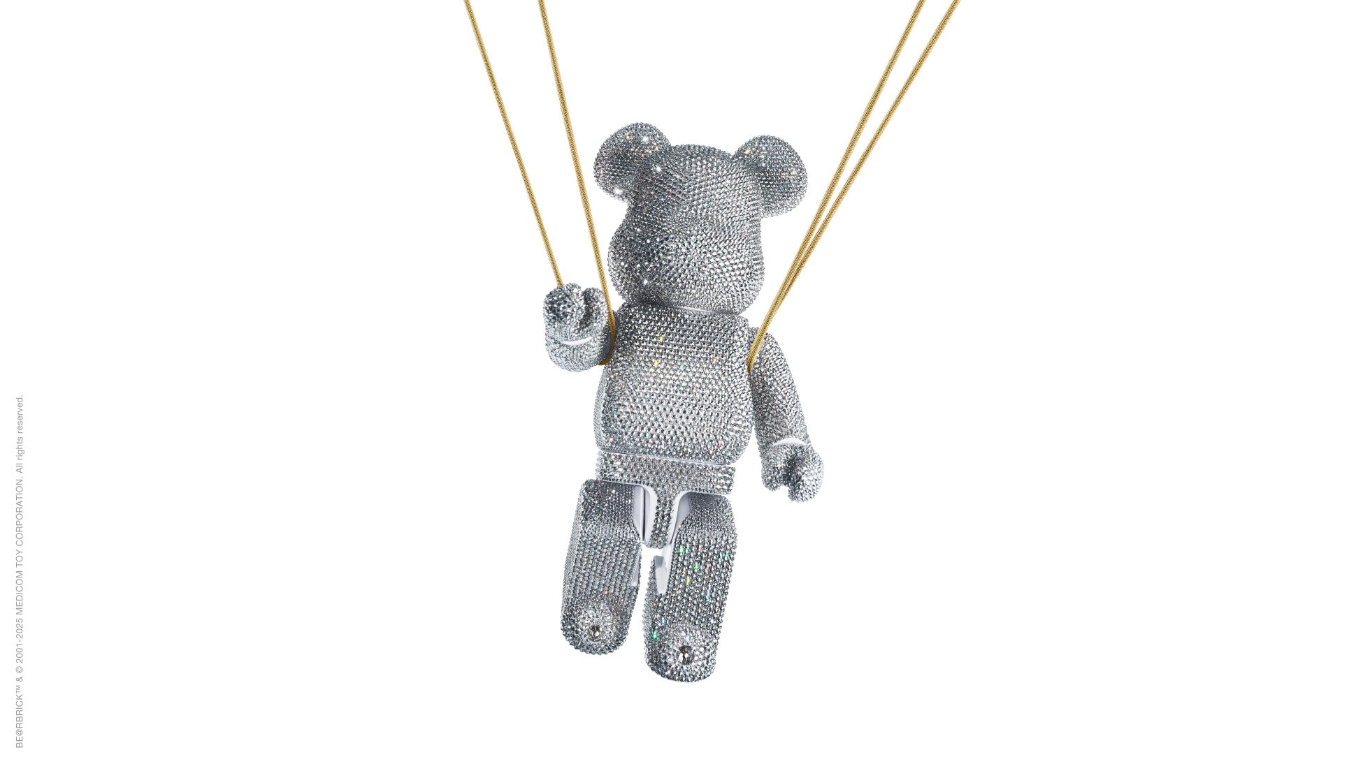 ストリートカルチャーにルーツを持つBE@RBRICKが、Swarovskiとのコラボで14,500粒のクリスタルをまとい、ポップカルチャーの象徴をクリスタルアートの傑作へと昇華。フラットバッククリスタルを精密に手作業で装飾した、唯一無二のコレクターズアイテムです。