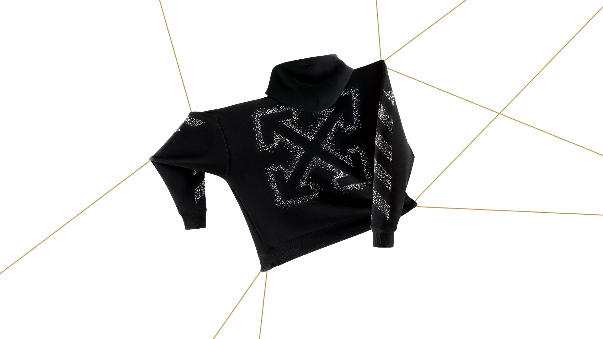 ラグジュアリーファッションとストリートウェアの交差点に立つOff-White™。そのアイコニックなフーディが、4,025粒のクリスタルで星空を思わせるデザインに変貌。Swarovskiのパヴェ・ジュエリー技法を反映した多彩なサイズのクリスタルが、豊かな質感と卓越したクラフツマンシップでブランドのビジョンを体現します。