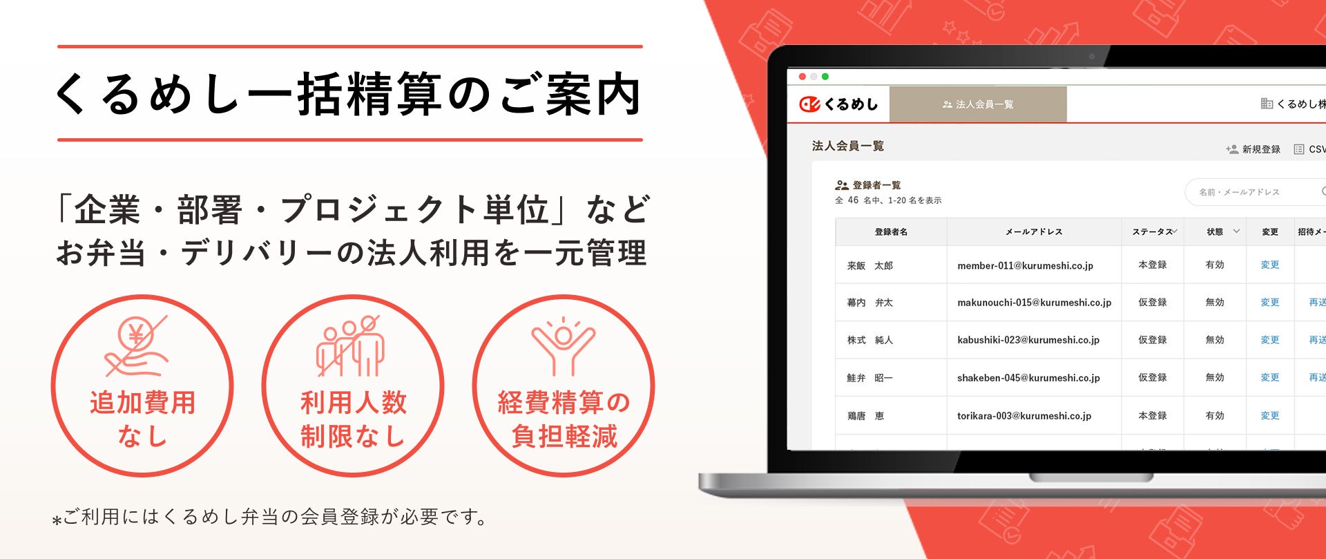 国内最大級の法人向けデリバリーサービス「くるめし弁当」 インボイス制度、電子帳簿保存法に対応した「くるめし一括精算」の提供開始