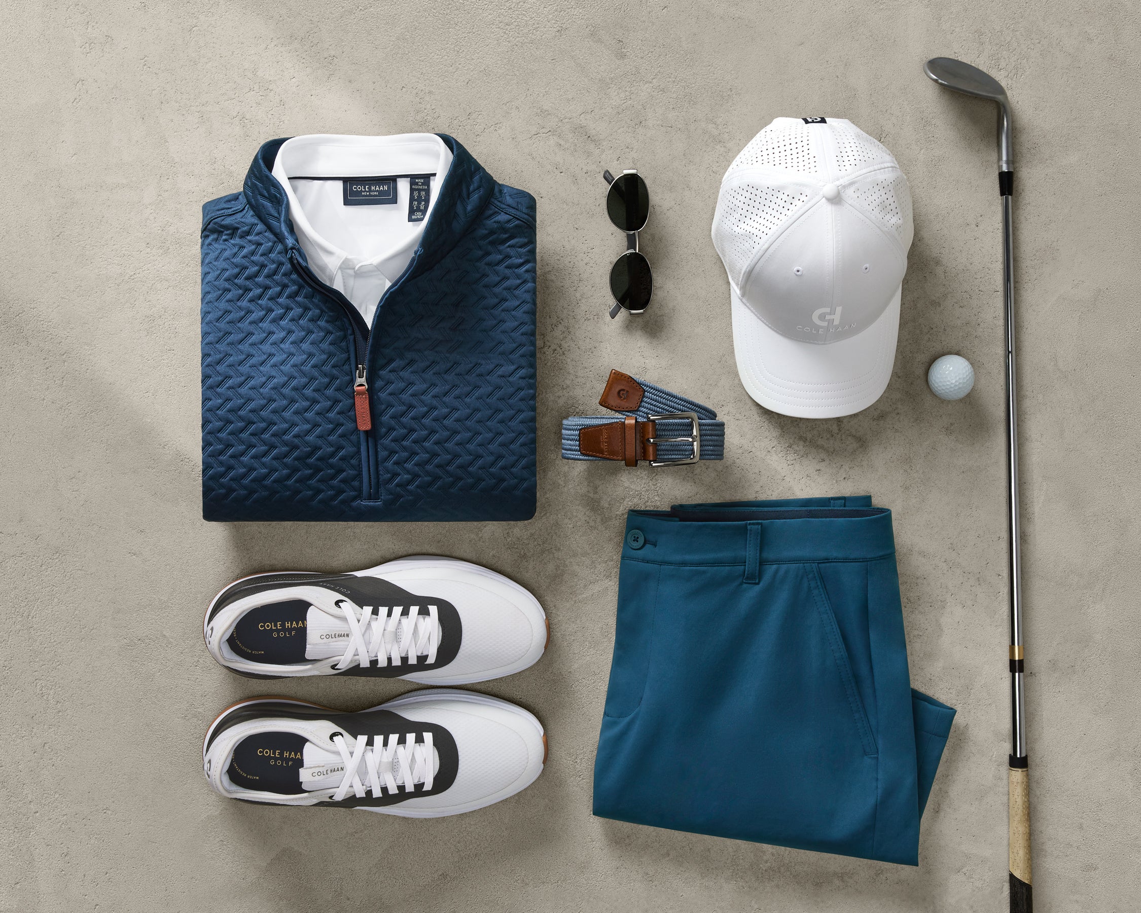このコレクションは、Cole Haanのデザインの伝統とCatapult Groupの製造やマーチャンダイジングにおける豊かな専門知識がペアを組むことによって生まれました。テイラードシルエットに加えて、ピーチスキン仕上げ、すっきりとしたフィット、さりげないアクセントなど、考え抜かれたディテールが、ストレッチ性、調湿性、調温性、耐候性を備えるよう開発されたパフォーマンス志向の生地とバランスよく組み合わされています。その結果、午前9時のミーティングから後半9ホールまで機能性と洗練性のどちらも重視する現代的なゴルフワードローブとなったのです。