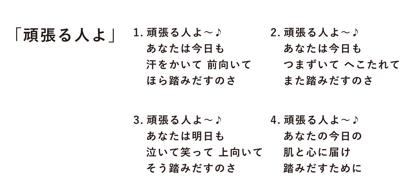 今回、コンセプトムービーのBGMとしてオリジナルソング「頑張る人よ」を作りました。「頑張る」「頑張れ」とはあまり言わない時代です。だからこそ改めて、日常の中にいる「頑張る人」たちの近くで、その人の気持ちや行動に寄り添い、応援する。そんな存在でありたいという想いを込め、この歌詞を作りました。