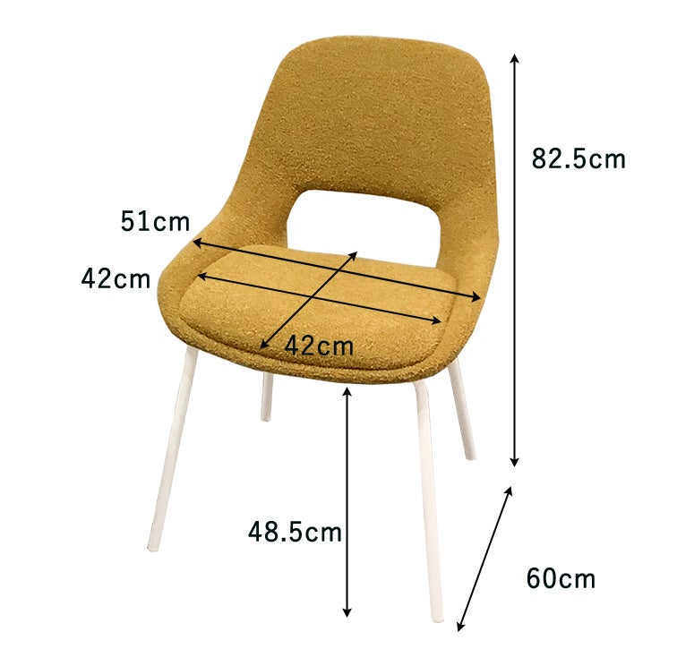 チェアの脚は淡色インテリアのアクセントにもなる白を採用。心地よく肌触りもいいモコモコ生地のシートが、無機質な脚の印象を中和し高級感が漂せています。