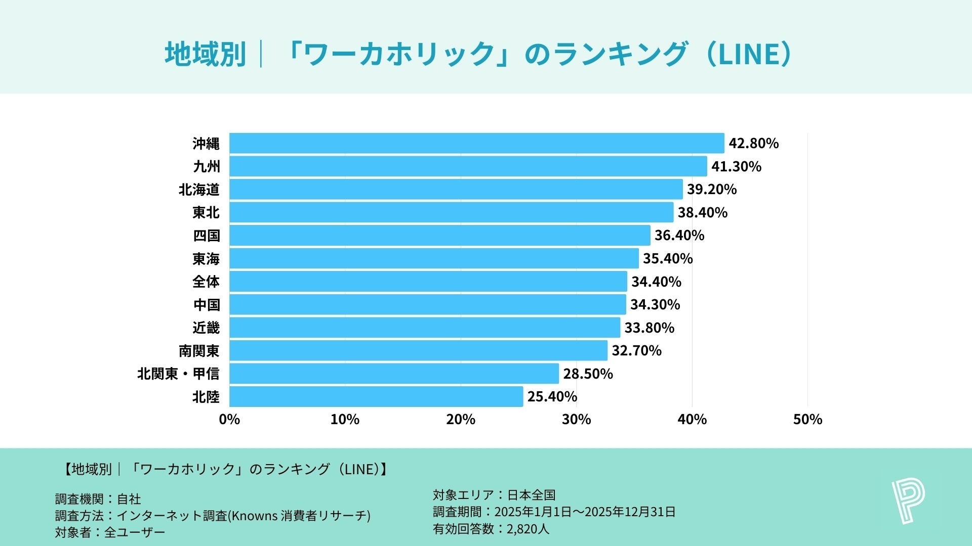 調査名 :主要SNSアプリ利用者におけるワーカホリック割合の地方別比較調査